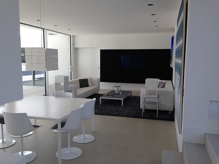 Aménagement intérieur d’une villa de 300m2, en collaboration avec le bureau d’architectes Assemblage Collectif d’Arts Appliqués, 2014. Montage de cloisons, revêtements de sols et habillage murs.