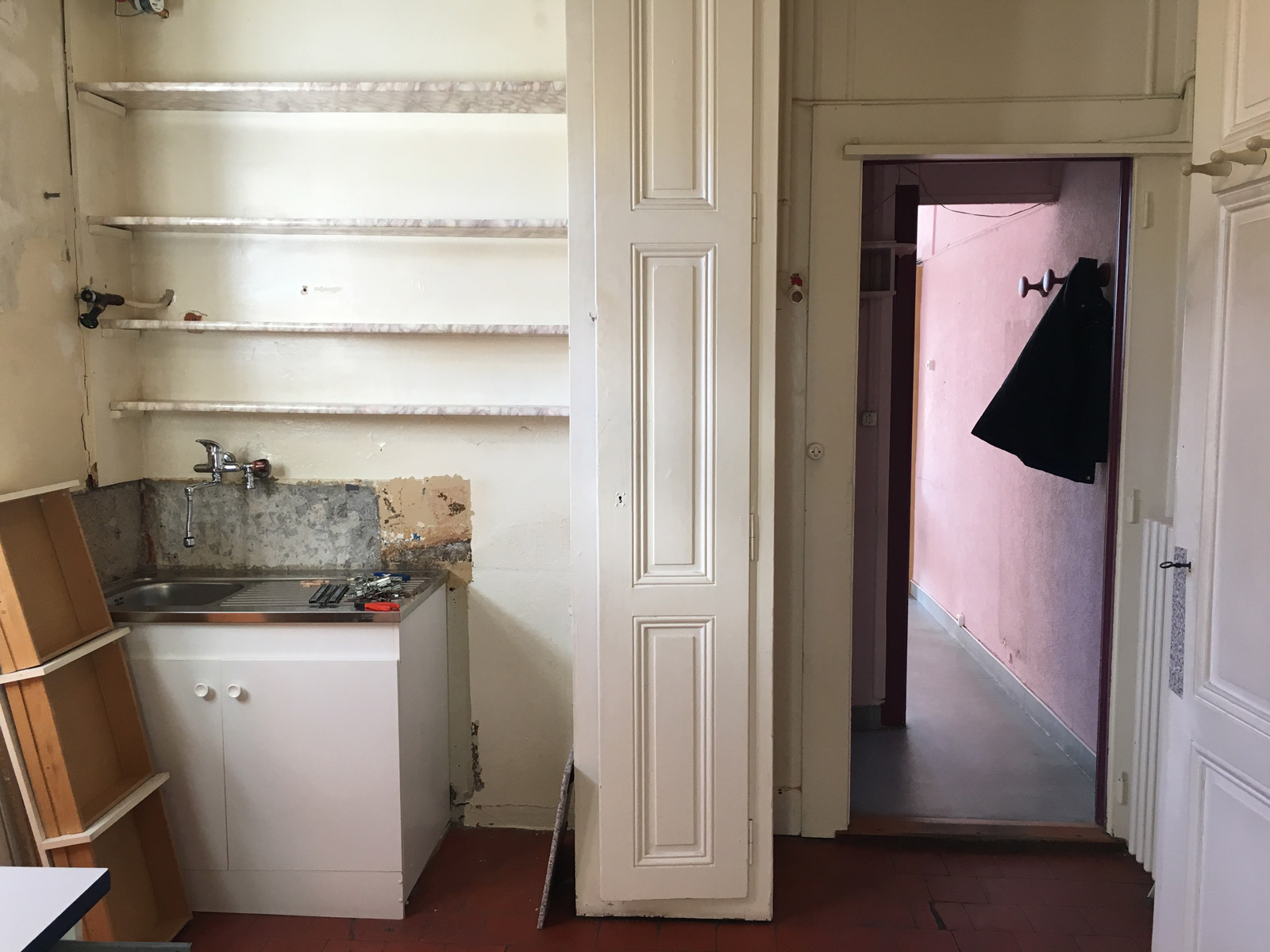 Exécution d’ouverture dans des cloisons existantes, suppressions de l’ancienne cuisine, création d’une nouvelle trémie d’escalier et réfection complète des plafonds, murs et sols.