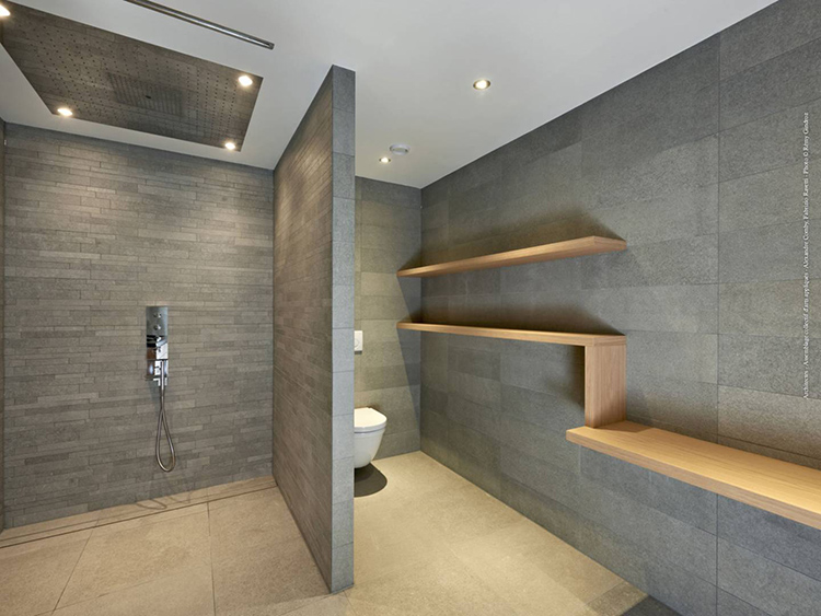 Villa à Veyrier Création d’une salle de bains de 15m2 dans une villa , en collaboration avec le bureau d’architectes Assemblage Collectif d’Arts Appliqués, 2016.