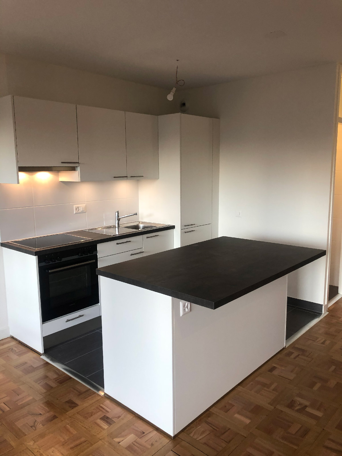 Blanc Bénit Rénovation complet de l’appartement avec une transformation intégrale de cuisine Photo après et avant rénovation Corps de métier : Peintre, Plâtrier, Carreleur Technicien