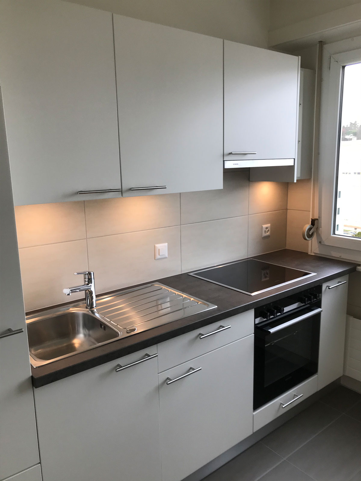 Dépose de la cuisine et installation de nouveaux éléments sur mesure avec équipement.