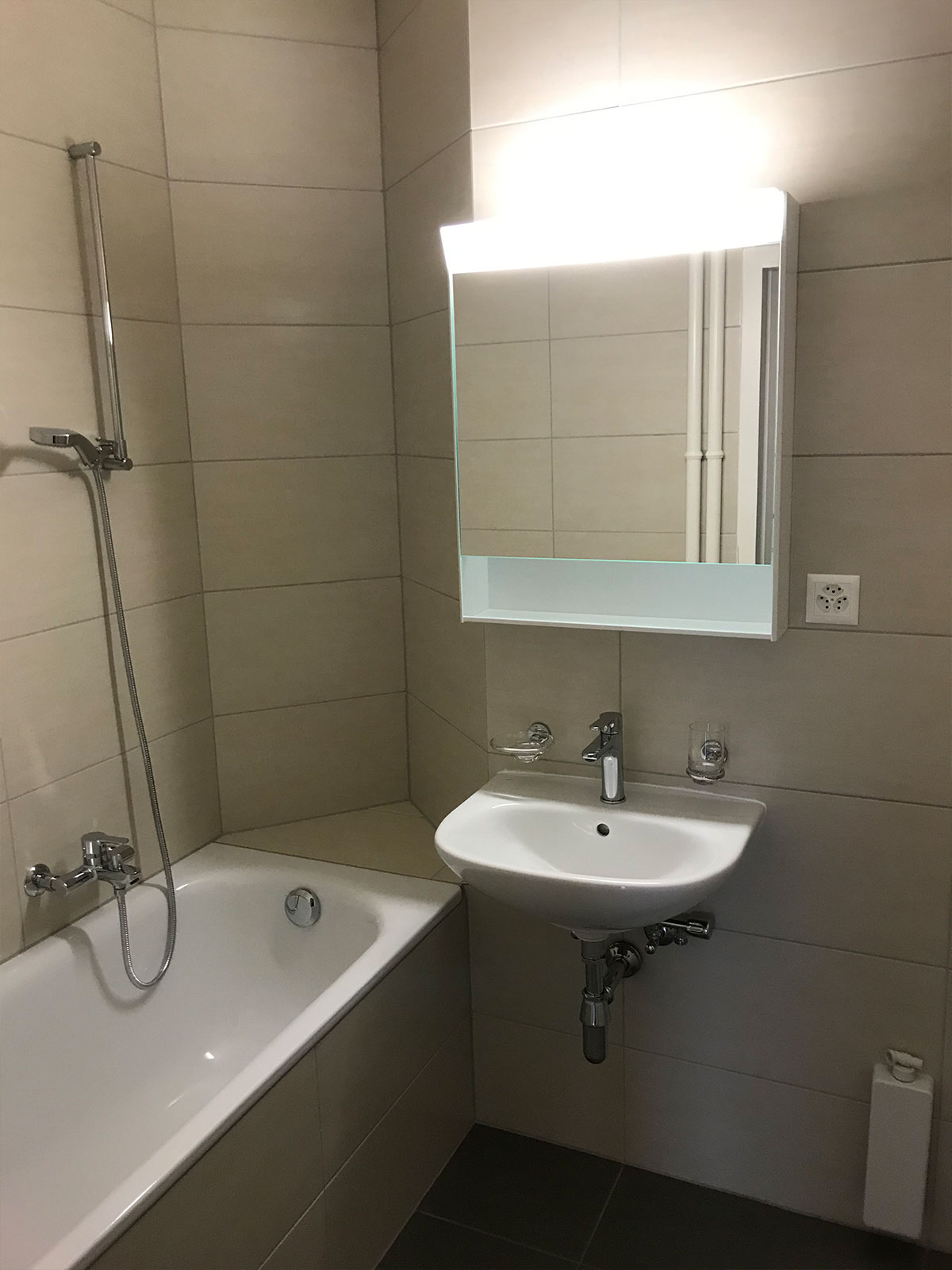 Remplacement d’un wc posé au sol par un wc suspendu. Remplacement des éléments sanitaire de la salle de bain et reprise des alimentations.